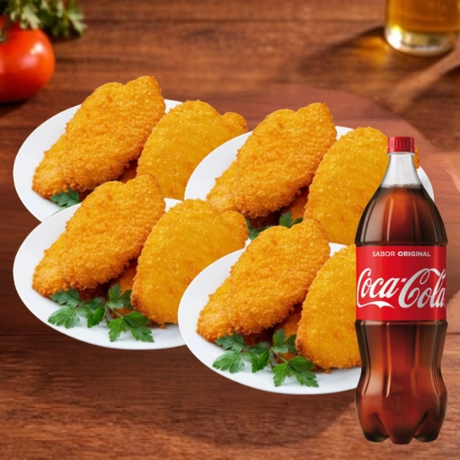 2 quentinhas G (750ml) de Frango Empanado + 2 quentinhas P (500ml) de Frango Empanado + 1 Refri 2L